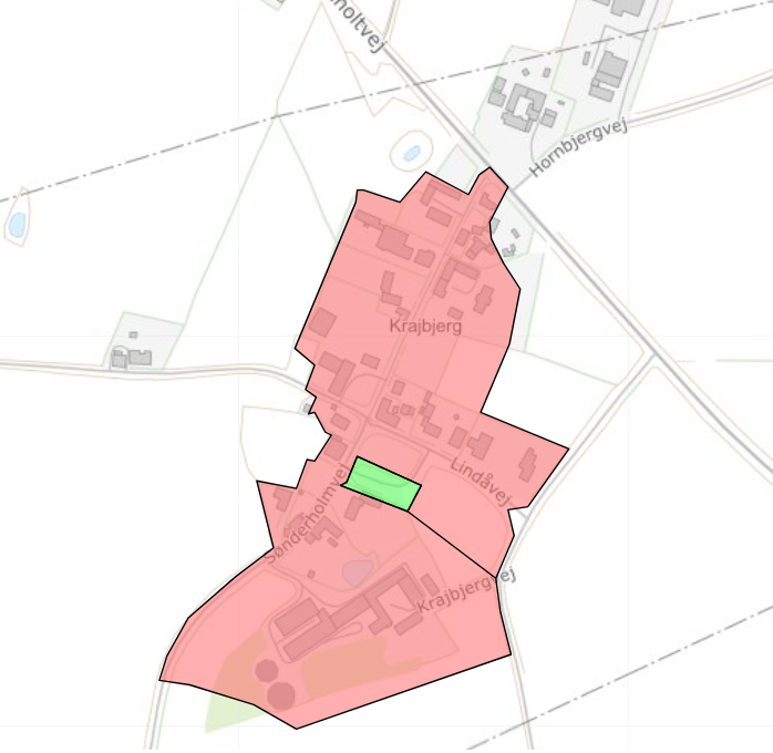 I Krajbjerg skal justeringen af landsbyafgrænsningen muliggøre, at nyt byggeri i den sydlige del af landsbyen bygger videre på landsbyens karakter som vejsidelandsby.
