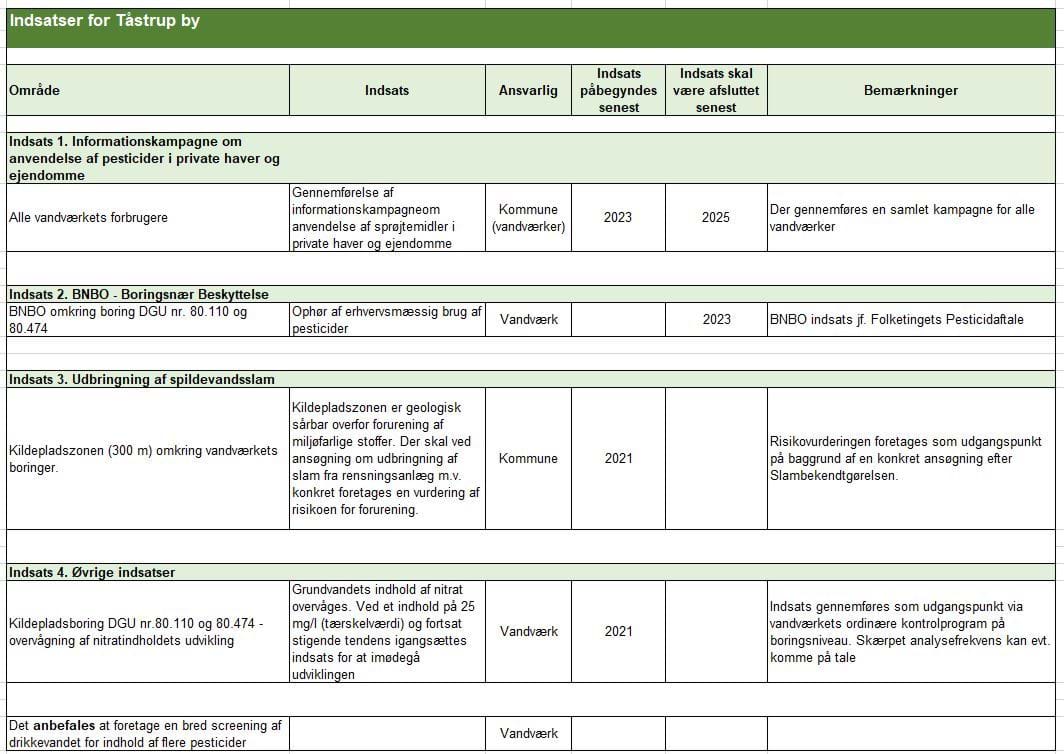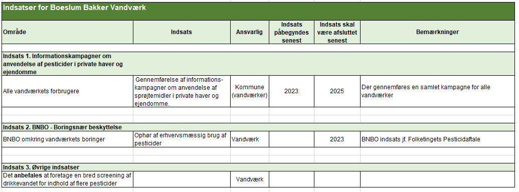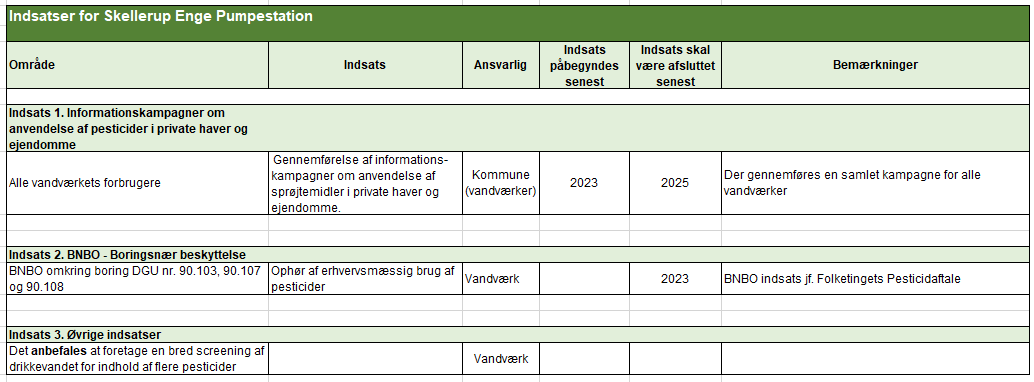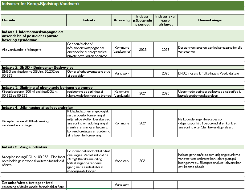 Som følge af de geologiske forhold vurderes grundvandet generelt at være sårbar overfor pesticider og miljøfremmede stoffer. Der skal derfor iværksættes indsatser indenfor BNBO, hvor erhvervsmæssig anvendelse af pesticider ikke tilladt efter 2023.