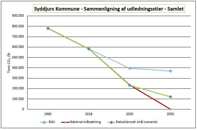 Figur 32: Samlet reduktionssti for Syddjurs Kommune