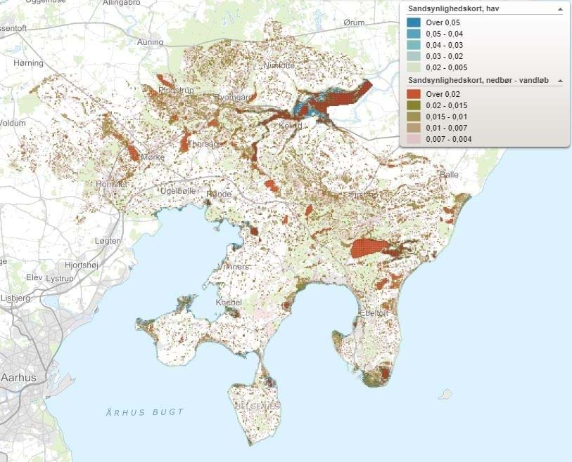 Figur 27: Samlet sandsynlighedskort. Webkort Syddjurs Kommune